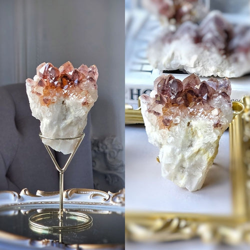 Red Phantom Quartz Cluster on Rose Gold Stand - 572g #150